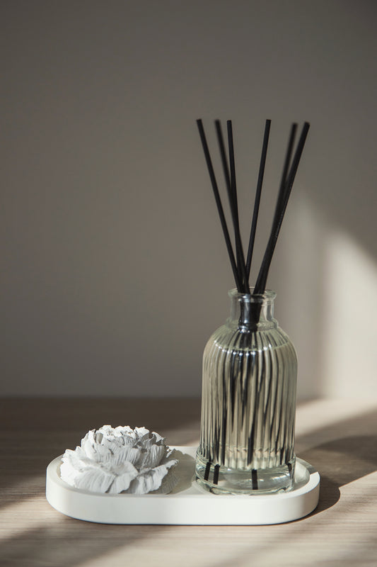 Namų kvapo dovanų rinkinys – namų kvapas su gipsiniu bijūno žiedu ir lėkštele
