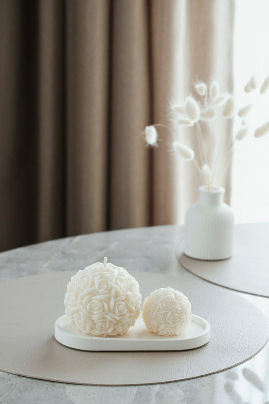 Elegantiškas rožių žvakių duetas su gipso padėklu – puikiai tinka namų dekoravimui ir dovanoms