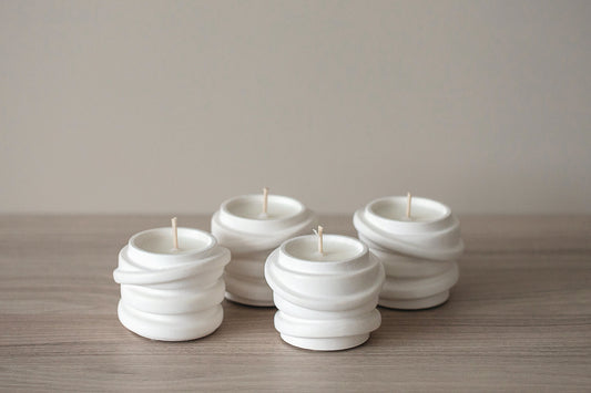 White Gypsum Tealight Candle Holder Set of 3 – Minimalist Design with Rope Detail set of 3