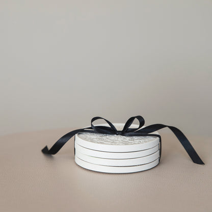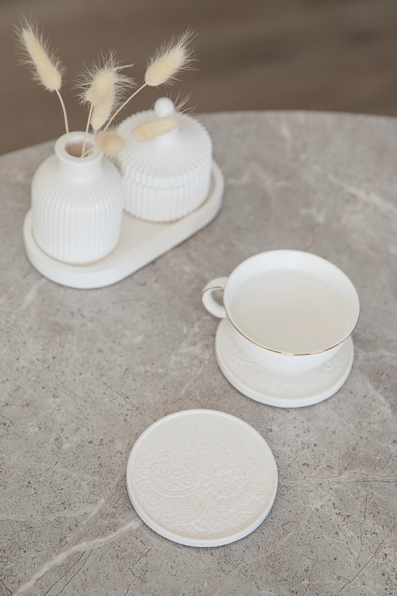 Set of 4 White Round Cup Coaster - Handmade Trays from Gypsum, Jewelry Tray, Housewarming Gift